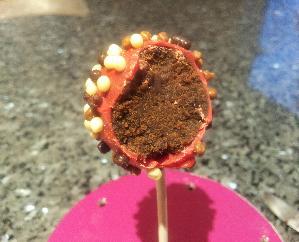 The cake pop itself is made up of soft chocolate cake with a moist truffle like texture (yum!) So it won't ever be dry or spongy! The cake is then carefully dipped in a chocolate coating of any colour and decorated to suit the occasion.